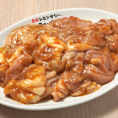 毎日店舗で1つ1つ丁寧に手洗いすることで豚独特の臭みを和らげ旨味を引き立たせます。東北産豚の小腸、大腸、ガツをミックスすることで様々な味わいや食感が楽しめ、味付けはにんにくと特製のスパイスを加えたパンチの効いた塩だれがときわ亭の定番です。