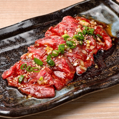 仙台流NEW名物!薄切り牛たんに大人気旨塩にんにくタレをたっぷり擦り込み、寿司下駄にドーーンッと乗っけました!タレの味がしっかりついており、口に入れた瞬間旨みが広がる極上の逸品!薄切りで食べやすく、お酒と合わせてお楽しみ頂けます。