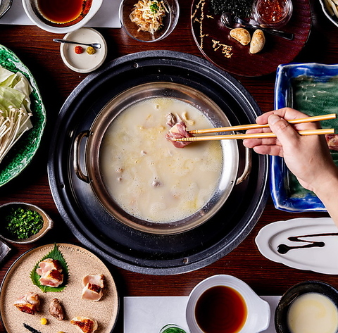 シェフこだわりの様々な部位を使用し、天草大王の水炊きのスープは添加物を使用せず、ガラのみを3日間強火で炊き上げ味わいの深い濃厚なスープに仕上げます。