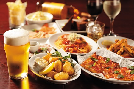 外はサクサク、中はジューシーなフィッシュ&チップスや、ハニーチーズスナック・バッファローチキンなど、フードメニューが充実!お酒とつまみがそろえば楽しい夜のひと時が加速していきます♪