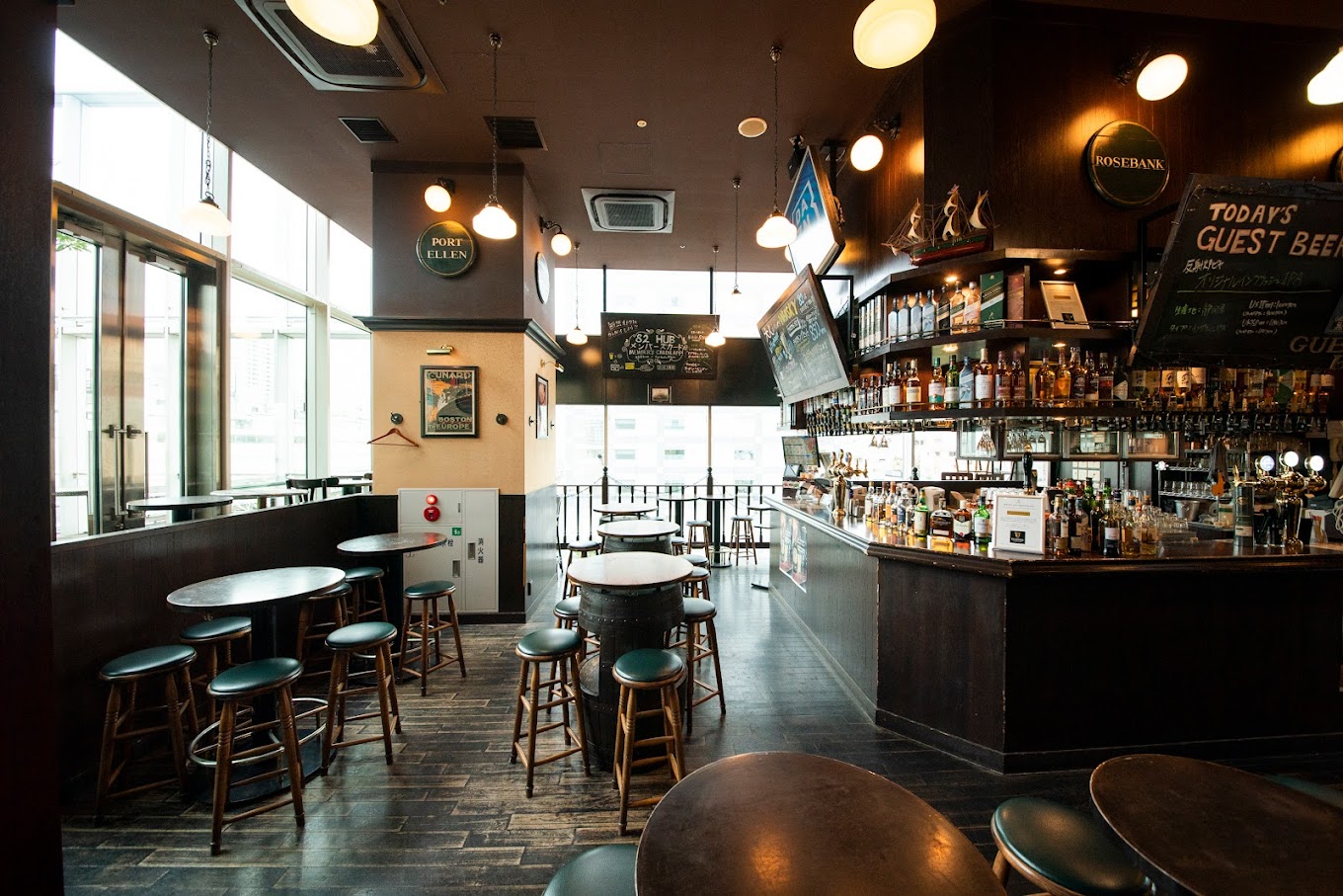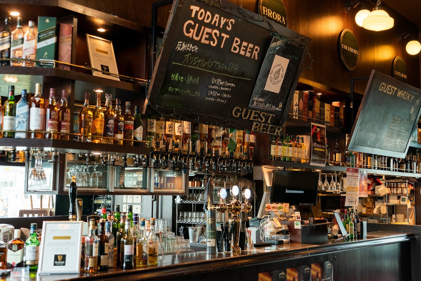 様々なお酒が並ぶカウンターは見ているだけでもワクワク♪世界各国のお酒をリーズナブルな価格で取り揃えてます!本場のPUBさながらの英国調の店内は素の自分に戻れる場所です。