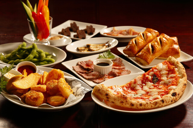 外はサクサク、中はジューシーなフィッシュ&チップスや、ハニーチーズスナック・バッファローチキンなど、フードメニューが充実!お酒とつまみがそろえば楽しい夜のひと時が加速していきます♪
