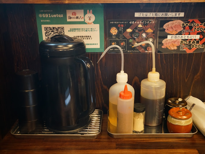 油そばは汁なしの新しいスタイル。自分好みの味にカスタマイズできるのが魅力です。お酢や七味、ニラ味噌などの味変アイテムを使って、毎回違った楽しみ方ができます。飽きることなく楽しめる一杯を堪能しましょう。