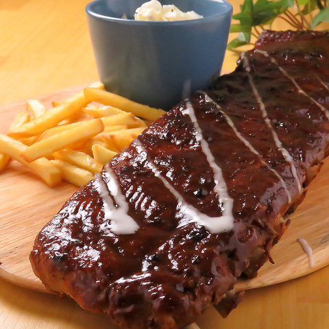 当店で独自配合した11種類のスパイスを使用し、3時間低温調理。時間をじっくりとかけたベイビーバックリブは骨からホロリとお箸でも取れるほどの柔らかさです。また3種類からお選びいただけるBBQソースをタップリ塗り重ね、炭火焼きで香ばしく仕上げます。