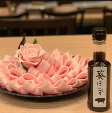 クセやアクがほとんど無く、甘みもあり美味しいあぐー豚のしゃぶしゃぶを、当店自慢の自家製ポン酢と沖縄のシークァーサーを使ったシークァーサー胡椒でお召し上がりいただきます。是非、自慢の2つの調味料で二通りの味をお愉しみください。