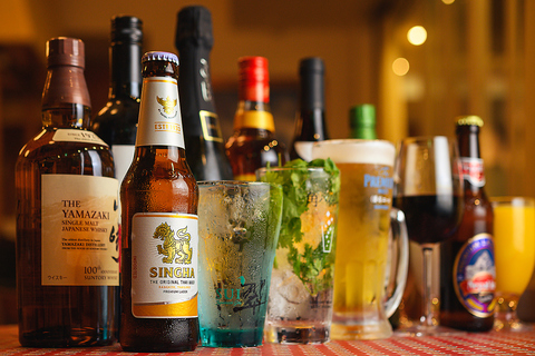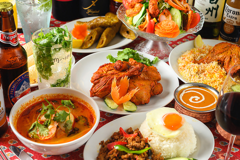 【生ビールもついている単品飲み放題 90分フリードリンクプランコースは¥1,815~からご用意♪某有名レストランで修業を積んだベテランネパール人シェフが作る絶品本格エスニック料理!豊富なアラカルトメニューの数々♪当店自慢の本格ガパオライスをお召し上がりくださいませ♪