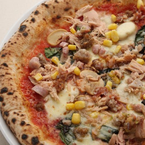 直径約25cmの熱々もちもちの窯焼ピッツァは600円~お楽しみ頂けます♪自社開発の窯とイタリア素材にこだわりオーダーいただいてから焼き上げるます!