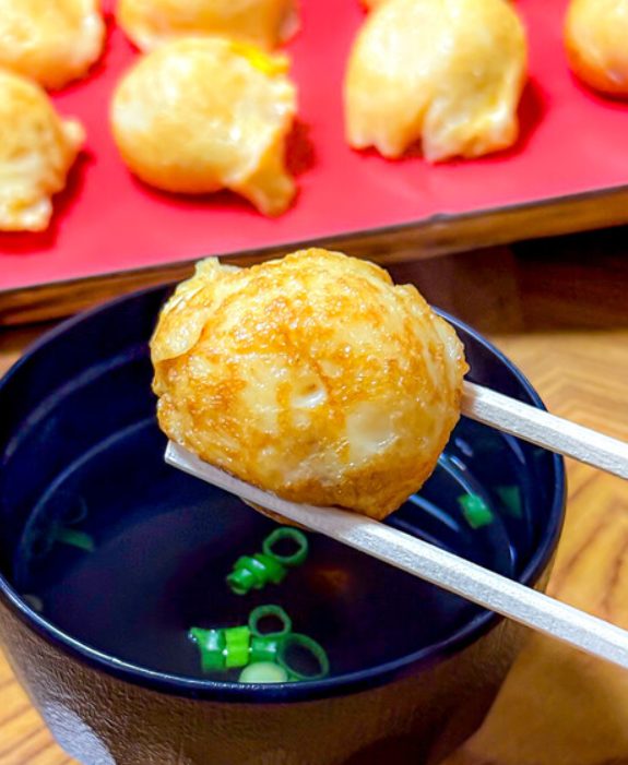 ふんわりプルプル、口に入れるととろける食感の玉子焼は、明石を代表する逸品。タコの弾力と卵の優しい風味が絶妙に重なり、だしに浸せばまるで茶碗蒸しのような上品な味わいに。25個入りの明石焼きはみんなでシェアできるボリュームで、食卓を笑顔で満たしてくれます。
