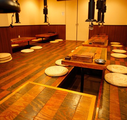 少人数から大人数のどんなお集まりにもご利用いただけます。大人数には掘りごたつのお座敷をどうぞ。写真のように仕切りのない空間を存分にご利用ください。その他、お一人様・カップル大歓迎のカウンター席や4名様までのテーブル席もあります。お気軽にお問合せ下さい。