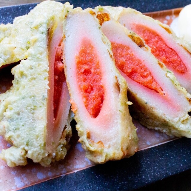 ちくわ明太磯辺揚げは、ちくわの中にたっぷりの明太子を閉じ込めた一品◎