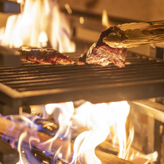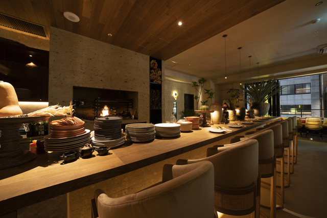 ALANでは薪焼きを楽しむことができます。和牛の塊焼きや新鮮な海鮮など、その他こだわりの食材を薪火でじっくり焼いていきます。薪の香りを料理と共に楽しんでください。ロングカウンターから薪焼きを間近で楽しめることもALANの特徴です