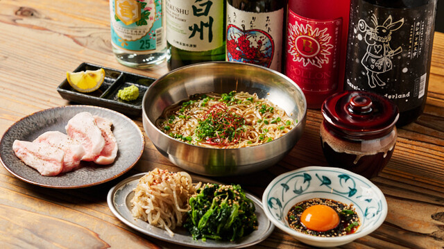 お酒のお供に味わっていただきたい一皿は、「冷やしホルモン橋本盛り」。しっかり湯引きして仕上げたホルモンのプリプリ食感がたまりません!自家製赤酢味噌をつけて味わえば、お酒が進む美味しさ◎そのほか、リブロースやバラの定番部位からA5和牛など贅沢なメニューまで充実のラインナップをご用意しております。