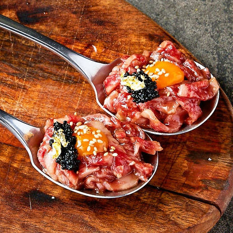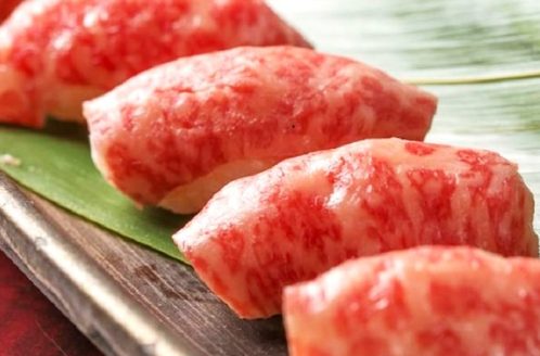 A4和牛を使用した「特選A4和牛の炙り寿司 -塩」また、3時間食べ飲み放題の「アモーレ肉づくしコース」もおすすめで、お得な価格で幅広い肉料理を楽しむことができますます!