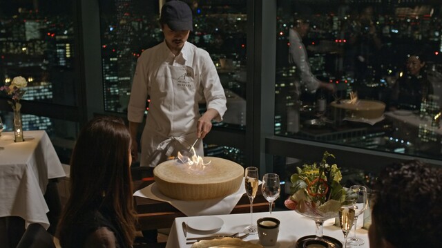 人気メニュー【炎のパルミジャーノリゾット】濃厚なチーズの香り臨場感あふれるパフォーマンス仕上げにトリュフをまとわせて五感で楽しめるAr’sの人気No.1メニューです。