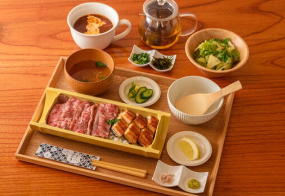 8:00〜11:00限定で提供する「ととのう朝食」は、栄養バランスに配慮した優しい味わい。鰻と和牛のおにぎりに、具だくさん牛汁を添えた人気メニューで、気持ちのよい一日をスタートしませんか?
