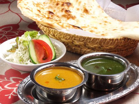 インド料理を堪能したい方におすすめのセットです。お好みのカレー1種・ナンまたはライス・サラダ・タンドリーチキン・マライティッカ・シークカバブ・1ソフトドリンク付き!