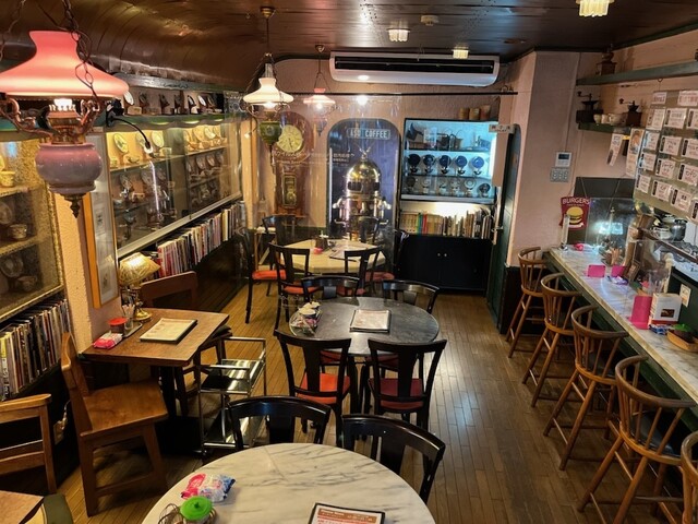 ボーンチャイナ系の食器やアンティークの展示品が店内を彩り、老舗の風格を漂わせる。自家製の英国風スコーンやダージリンティーは絶品で、コーヒーも上質なブレンドが楽しめる。