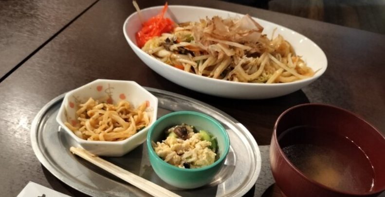 たっぷりの生姜焼きは、まさに定食屋のような懐かしい味わい。付け合わせのモヤシはニンニク醤油のナムルで、香ばしい風味が食欲をそそります。さらに揚げ餃子が2個付くお得感もうれしいポイント。がっつり食べたい日にも満足できる、ボリューム満点の一皿が味わえます。