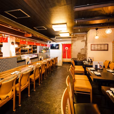 店内は木の温もりが心地よいアットホームな雰囲気。目の前がオープンキッチンのカウンター席は、お一人様でも気軽にご利用いただけます。テーブル席はレイアウトを変更できますので少人数から大人数の宴会等様々なシーンにご利用頂けます。貸切も30名様まで承りますので、お気軽にお問い合わせください!