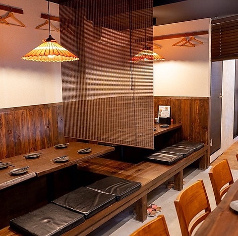 半個室の座敷は掘りごたつ席になっております。ゆったりと座れるのでゆっくりお時間をお過ごし頂けます♪少人数での飲み会や大人数でのご宴会など、様々なシーンでご利用下さい◎