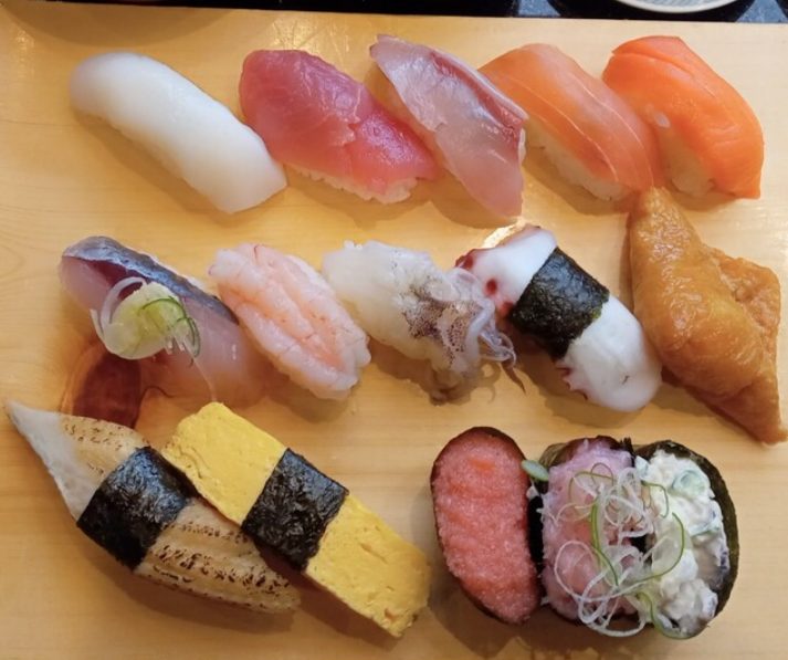 県内中心部でアクセスも良好。レーンには2貫120円から楽しめる多彩なネタが並び、松・竹・梅・桜と色分けされたセットは手渡しで提供されます。リーズナブルながら地物の旬ネタにこだわる姿勢が、多くのファンを惹きつける理由です。