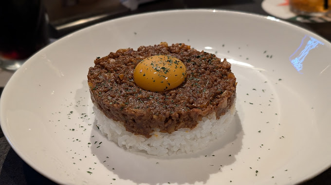 「GROTTO特製ドライキーマカレー」はカレーマニアの店長が作る絶品料理。辛さが選べ、卵黄を絡めるとさらに美味しさが倍増!大分中津の究極の唐揚げもサクサクでジューシー。フードメニューが豊富で、ノンアルコールドリンクも充実しているのが嬉しいポイントです。