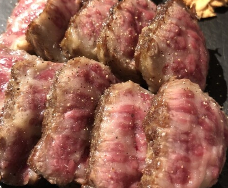 旨味たっぷりの赤身“ウチモモ”やジューシーな“ハラミ”など、こだわりのステーキを塩&わさびで堪能。ワインや日本酒など、お酒の種類も豊富で、その日の気分に合わせて楽しめるのが魅力です。