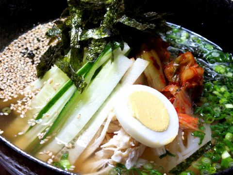 名物!別府冷麺定食!麺はそば粉を使用しておりません。もっちり丸麺or柔らか目の角麺からお選び頂けます!カツオベースの和風スープです。他にも選べる定食や焼肉定食など幅広くご用意!