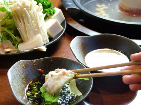 口の中でとろけるような柔らかいしゃぶしゃぶ!!特製ポン酢と赤ゆずごしょうで食べるとおいしいですよ!食べ放題コースや4000円からのコースもご用意★