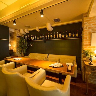 開放感がある吹き抜けが印象的な1Fは、おしゃれなメインカウンターとバーカウンターをご用意。デートはもちろん、友人同士やおひとり様でも気軽にご利用いただけます。2Fは全席ソファー席でまったりと過ごせる落ち着いた雰囲気◎程よく広い空間で気兼ねなくお食事を楽しめますので、女子会にもおすすめです。