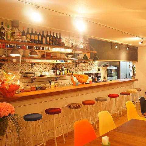 女性に人気の秘密は明るい店内と色とりどりの可愛い内装。ポップな印象になるようにわざとバラバラなインテリアを組み合わせることで明るく楽しい雰囲気を演出しています。お店の前にはバス停のような看板が!SNS映えスポットです☆お待ち合わせ場所にも最適!
