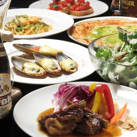 当店人気のピザ3種類(マルゲリータ、ソーセージ、ベーコンと茸のクリームピッツァ)が食べ放題!お好きなだけピザを楽しんでください♪他にもパスタorリゾットなど当店自慢の料理をお楽しみいただける人気のコースです☆