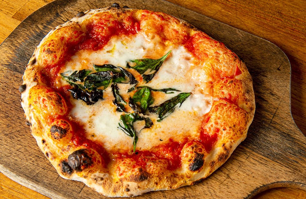 20種類以上が揃う伝統的なナポリピッツァは、なんとワンコイン、500円からオーダーできます。最大の特徴は、驚くほどモチモチとした生地の食感。口当たりは軽いのですが、しっかりと食べ応えもあるのです。