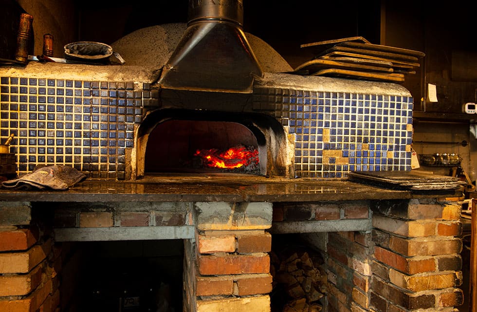お店のシンボルにもなっている大きな薪窯はオールハンドメイド。均質に火が通るガス窯とは異なり、焼き上がりにムラが出来るのも美味しさの秘訣。本場ナポリの手法と同様に、中心温度を450℃程度に保ちつつ1分半以内に焼き上げています。調理は1枚3分以内、提供までの時間がスピーディなのも、お腹が空いているときには嬉しいものです!