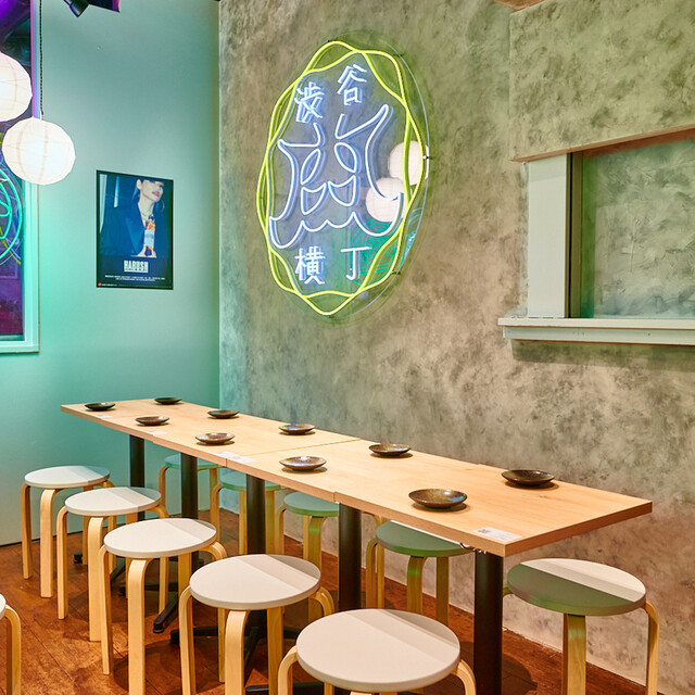 白を基調とした店内は、温かみのある黄色の照明に照らされた落ち着いた空間が広がっております。盆栽が飾られたテーブルやネオンが輝くお店のロゴは、SNS映えにもぴったり◎カウンターではお一人様やデートでしっぽりと、テーブルでは友人同士や女子会など気兼ねなくお過ごしいただけます。