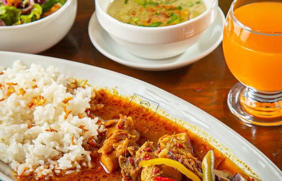 ランチタイムには、本格的なインドネシア料理をお得な価格でお楽しみいただけます。スパイシーチキンカレーや山羊肉のスパイシーカレーなど、豊富なメニューをご用意!ボリューム満点で満足感も抜群です。