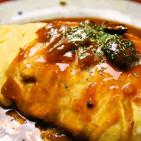 バター香るライスを玉子で包み、コク深い特製ハヤシソースで仕上げたBUZZで一番人気のオムライス。