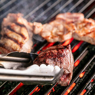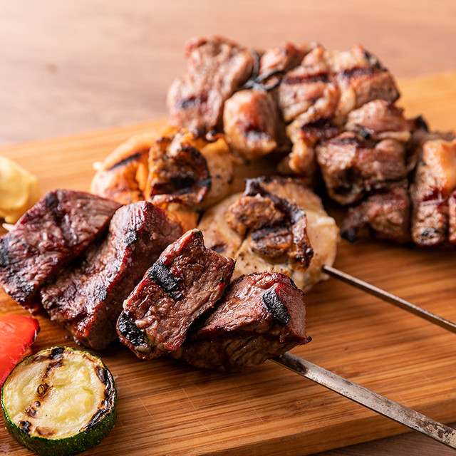 『ビーフ』『ポーク』『チキン』『ラム』『鴨』、それぞれのお肉料理からお好きな5種類を選んでいただける盛り合わせがイチオシ!最高温度800℃の炭火で調理し、外はカリッと中はしっとり肉厚ジューシーに仕上げたお肉は、1度食べたらやみつきになる味わいです!