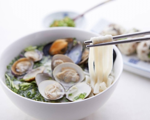 国産黒毛和牛の自家製ラードが味の決めて。日本のうどんとは違ったじゃがいもを使用した韓国伝統の麺。ニラやミツバの薬味をふんだんに使い仕上げました
