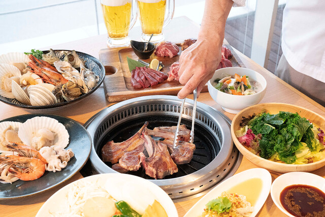★バーベキューと言えば和牛も外せない★人気の厚切りタンや、希少部位ランプ、イチボなどラム以外のお肉も充実★海を眺めながら海の幸を浜焼き★牡蠣など殻付きで焼き上げる幸せな海産も豊富にご準備。★サイドメニュー&ランチ★焼き以外の逸品もおすすめ!BBQやビビンバランチでお楽しみ下さい。