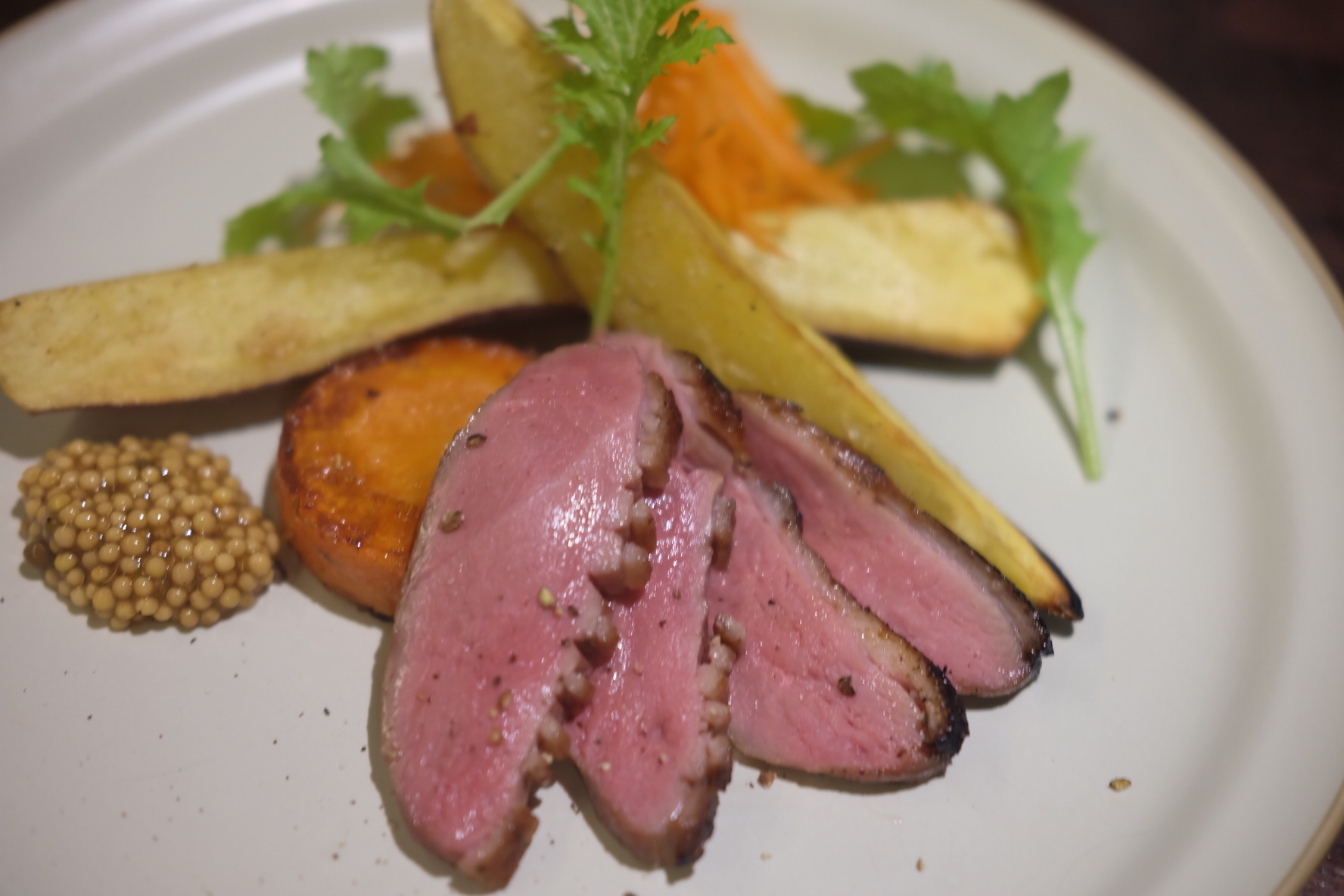 落ち着いた雰囲気の店内で、ゆったりとした時間を過ごせます。オープンキッチンからの香りと音が心地よく、料理を待つ間も楽しみのひとつ。サービスも丁寧で、食事の進み具合に合わせてサーブしてくれます。