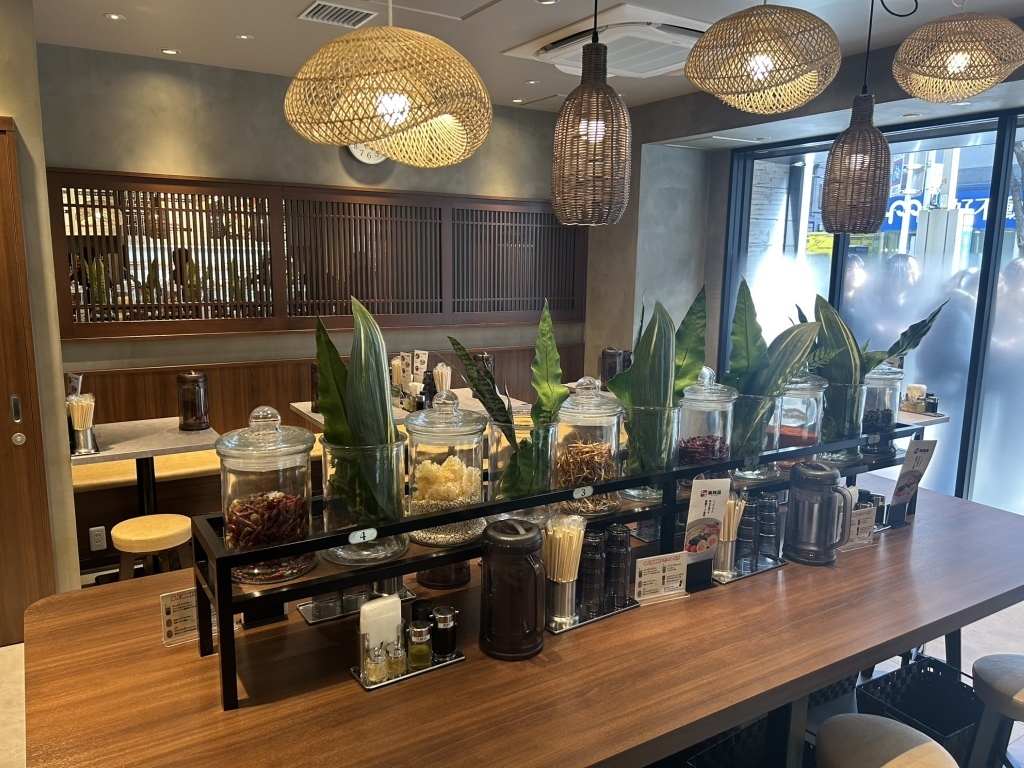 卓上の黒酢や花椒油、刻みにんにくなどを使えば、味変も自由自在。途中で黒酢を加えるとさっぱりとした味に変わり、最後まで飽きずに楽しめます。