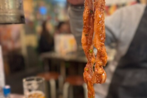 モクモクと立ちのぼる煙、ジュウジュウ音を立てる鉄板。一本ホルモンの豪快なビジュアルと甘辛ダレの香ばしさが食欲をそそります。昭和な空気感の中で楽しむ、至福の焼肉時間をどうぞ。