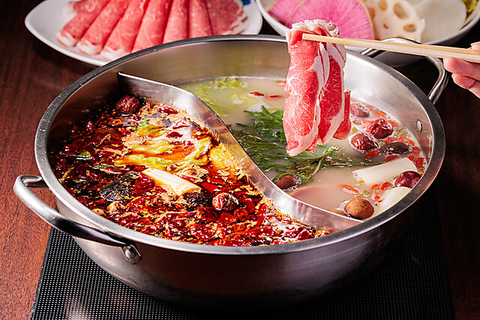 「白湯」と「麻辣」の2種類のスープは初めての味と評判。専門の鍋師だけが入ることの許される部屋でつくられる、秘伝のスープを是非、ご体験ください。