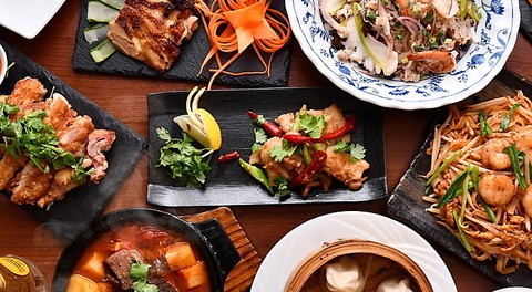 少人数から大人数まで対応できる多彩な個室を完備し、周囲を気にせず食事を楽しめます。中国料理とタイ料理を組み合わせた多国籍メニューは、お酒との相性も抜群。単品飲み放題プランもあり、好きな料理を選びながら自由度の高い宴席が叶います。