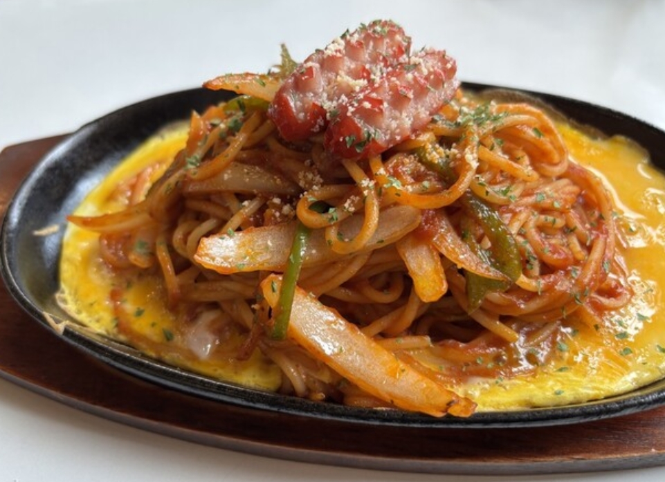 鉄板に半熟卵を敷いた昔風のイタリアンスパゲティは、甘すぎず素朴な味わいでどこか懐かしさを感じる一皿。ウインナー入りで食べ応えもあり、いわゆるナポリタンとは少し違う“昔ながらのイタリアン”を求める方におすすめです。