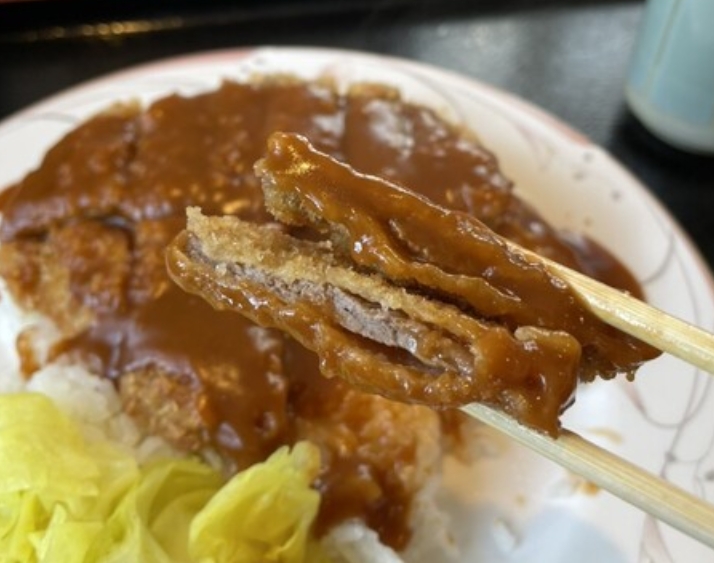 サクッと揚がった軽い衣に包まれたカツは、薄めで食べやすく、驚くほどジューシー。甘めのソースと相性抜群で、一口サイズの食べやすさも嬉しいポイント。箸が止まらなくなる美味しさです!