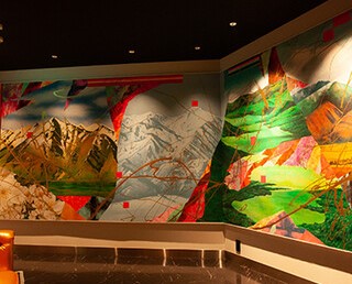 ロッキー山脈を臨む美しい渓谷。キャッシュバレーにある広大な自社牧場では完全オーガニックの飼料を食べ、ストレスなく育つブラックアンガス牛。この作品はその牛達が見ている春夏秋冬をイメージして描きました。自社牧場から届く特別なお肉を、現地をイメージして広大な大自然とご堪能下さい!