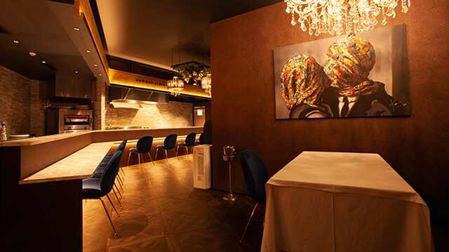 私たちの個室は、アメリカンカルチャーには欠かせないスニーカーやアートを、シャンデリアなどの煌びやかな装飾品とともに配置しており、落ち着きのあるラグジュアリーな空間ではあるものの、どこか遊び心溢れるワクワクする空間でもあります!