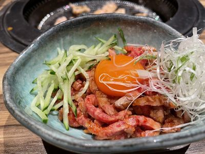 軟骨やカルビ、サガリなど定番のお肉はもちろん、変わり種のトリュフ冷麺や豊富なサイドメニューも楽しめます。石鍋で提供されるビビンバはパリパリのおこげが絶品で、全方位的な料理のバラエティが魅力です。